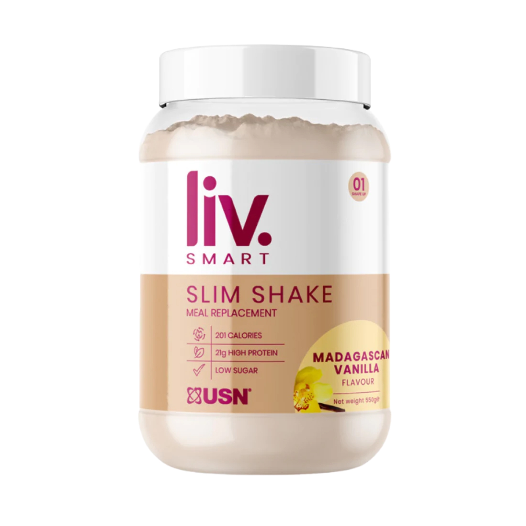 Donnez à votre corps la bonne quantité de nutrition pour atteindre vos objectifs de perte de poids. USN LivSmart Slim Shake est un délicieux shake substitut de repas à base de lactosérum contenant seulement 201 calories.